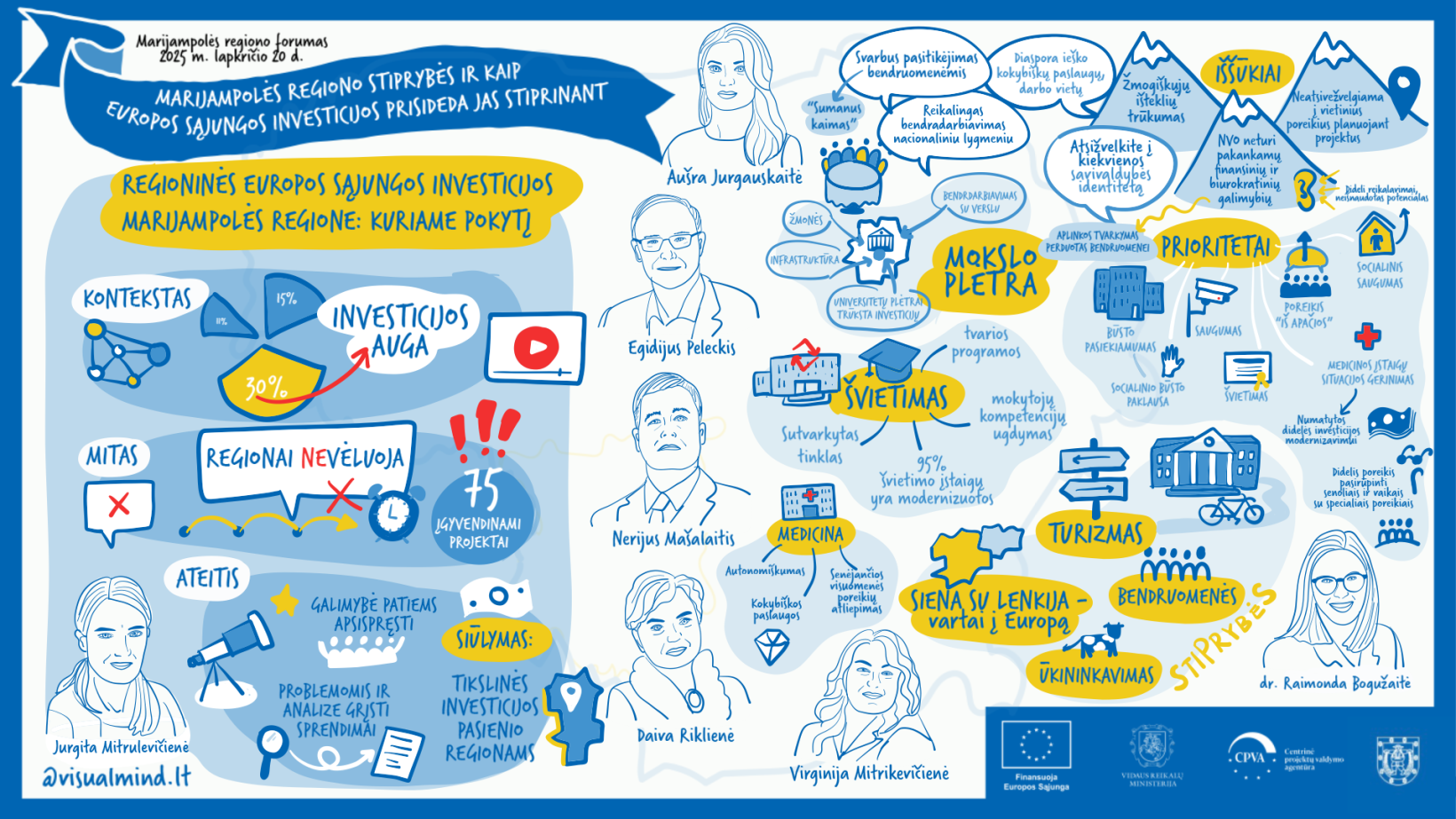 Apie Europos Sąjungos fondų investicijas ir jų dėka sukurtą pokytį Marijampolės regione kalbėjo Marijampolės regiono plėtros tarybos administracijos direktorė Jurgita Mitrulevičienė. Marijampolės regione 2021–2030 m. ES finansavimo periodu bus investuota virš 132 mln. Eur ES fondų lėšų projektams, įtrauktiems į Marijampolės regiono plėtros planą. Įvertinus savivaldybių prisidėjimą prie projektų įgyvendinimo, iš viso tai beveik 170 mln. Eur investicijų. Tai galimybė atnaujinti ir sukurti kuo labiau poreikius atliepiančią aplinką, viešąją infrastruktūrą ir paslaugas.