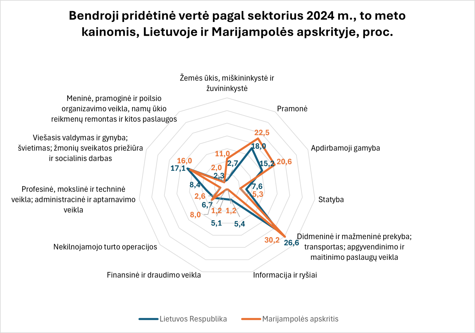 Marijampolės regione pramonės, apdirbamosios gamybos ir žemės ūkio sektoriai išlieka pagrindiniais sektoriais pagal sukuriamą pridėtinę vertę. Nors regiono eksportas sudaro santykinai nedidelę visos Lietuvos dalį, ši dalis nuosekliai auga, didindama regiono atsparumą ekonominiams svyravimams.