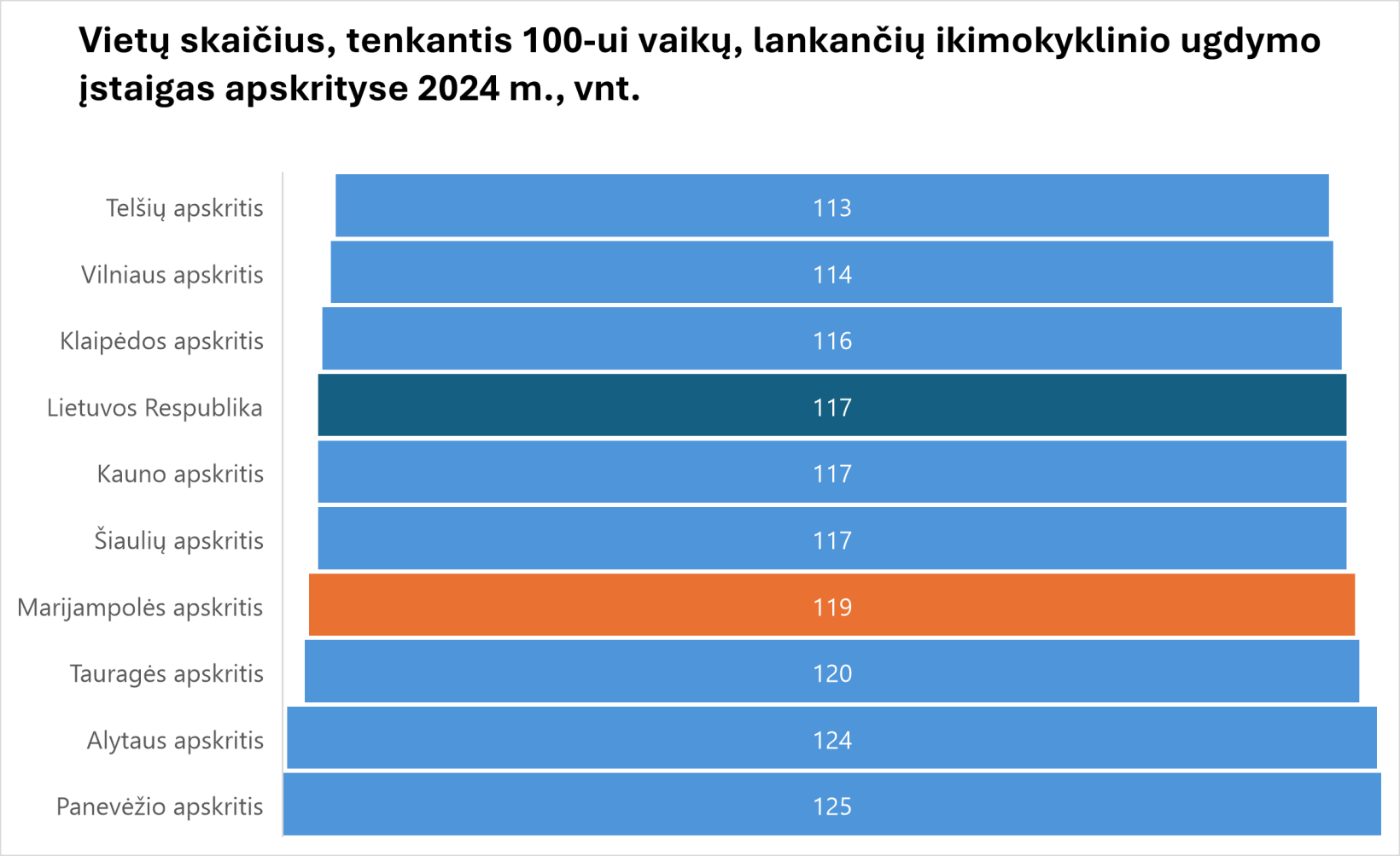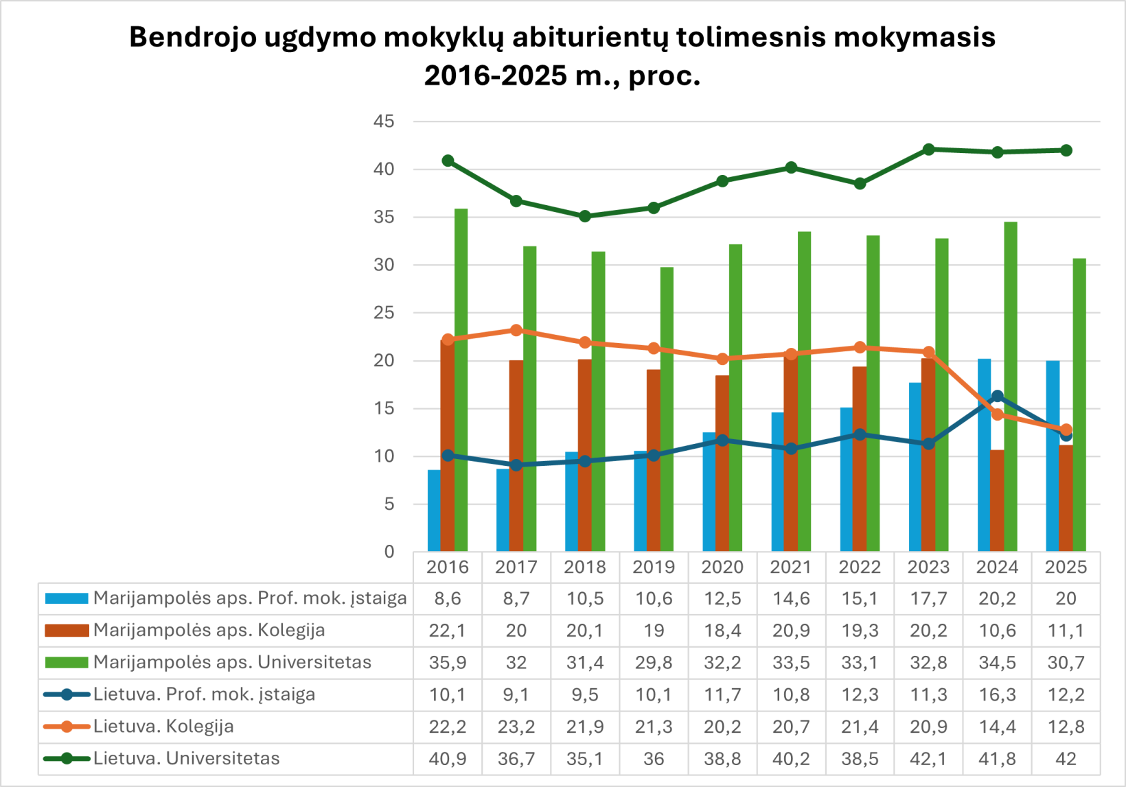 Švietimo srityje profesinis mokymas tampa vis populiaresniu absolventų pasirinkimu, o susidomėjimas šiomis studijomis nuolat auga. Tai rodo glaudų ryšį tarp jaunimo siekių ir regiono darbo rinkos poreikių. Taip pat Marijampolės apskrityje ikimokyklinio ugdymo prieinamumas išlieka aukštesnis už šalies vidurkį (regione – 119 vietų, šalyje – 117 vietų 100-ui vaikų).