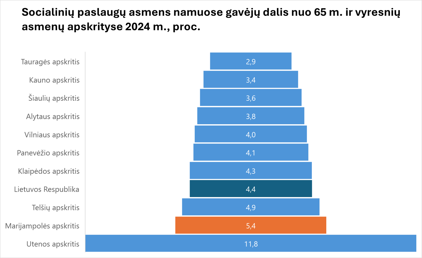 Regione aukštas socialinių paslaugų prieinamumas senyvo amžiaus asmenims. Socialinių paslaugų gavėjų dalis asmens namuose (nuo 65 m. amžiaus) Marijampolės apskrityje siekia 5,4 proc. ir yra didesnė už šalies vidurkį, kuris siekia 4,4 proc.