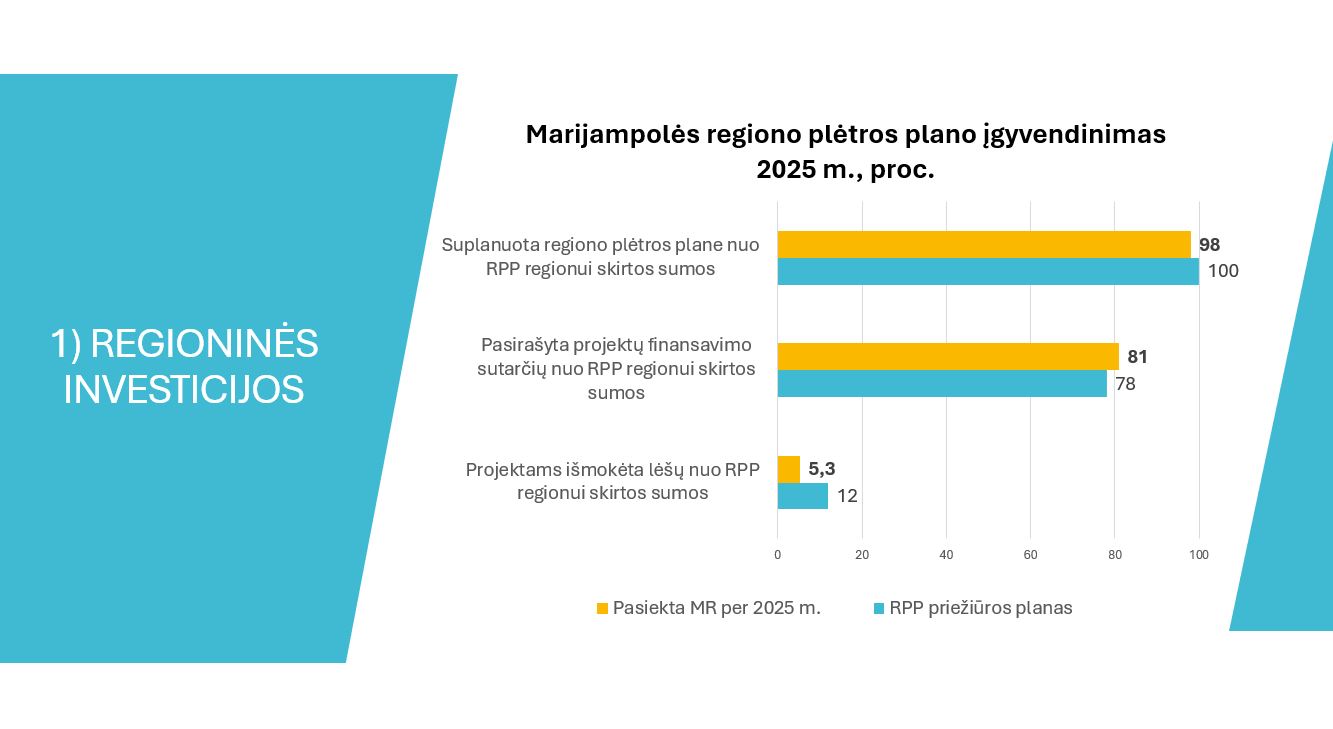Marijampolės regiono plėtros tarybos kolegijos posėdžio metu taip pat pritarta Marijampolės regiono plėtros tarybos 2025 m. metinių ataskaitų rinkiniui ir patvirtintas Marijampolės regiono plėtros tarybos 2026 metų veiklos planas. Jame svarbiausi 2026 metų darbai: